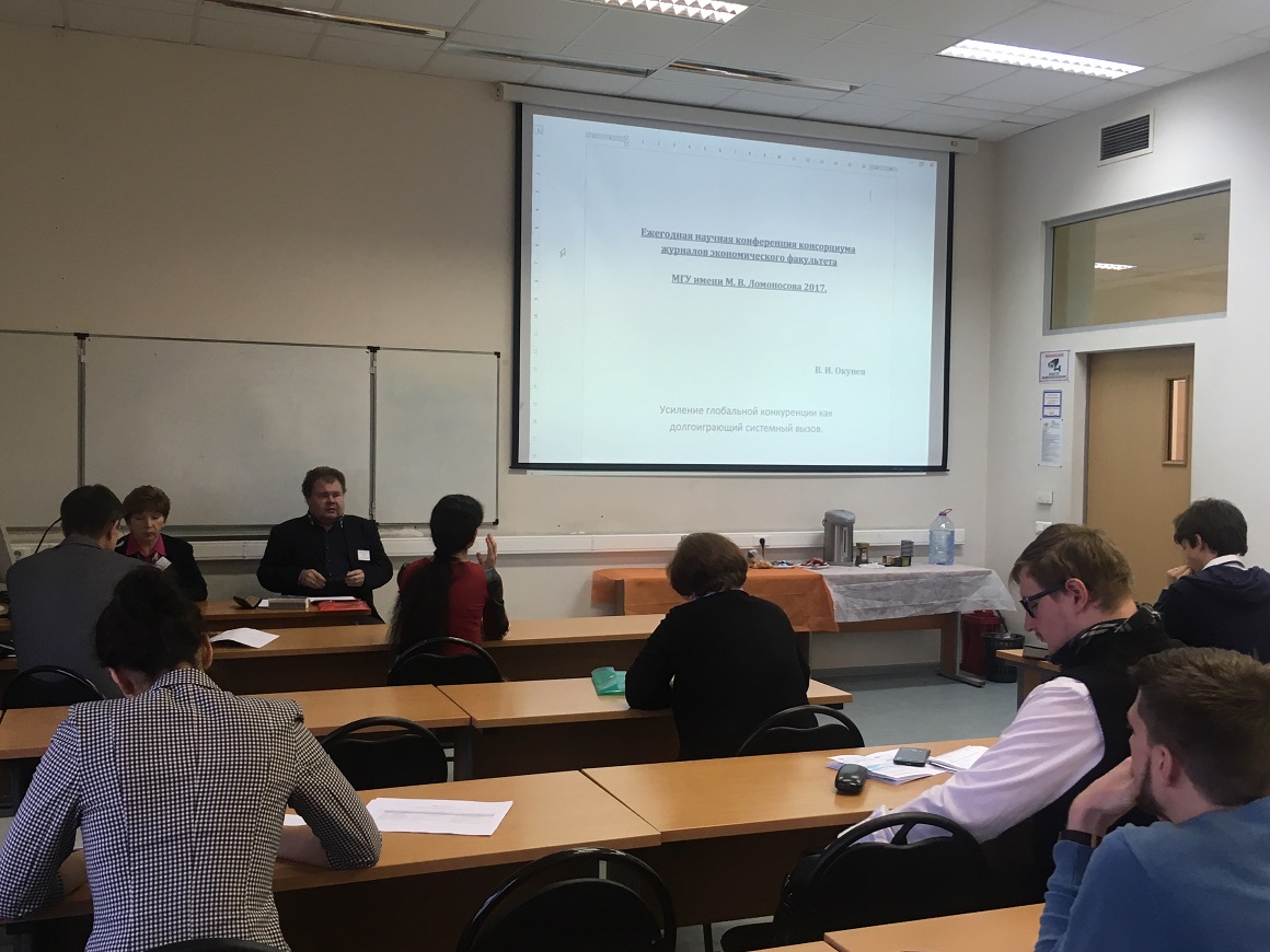 23 октября 2017 года в 15.40 в рамках ежегодной научной конференции консорциума журналов экономического факультета МГУ имени М.В. Ломоносова 2017 состоялась сессия "Глобальная экономика" (модератор проф. Герасименко В.В.).