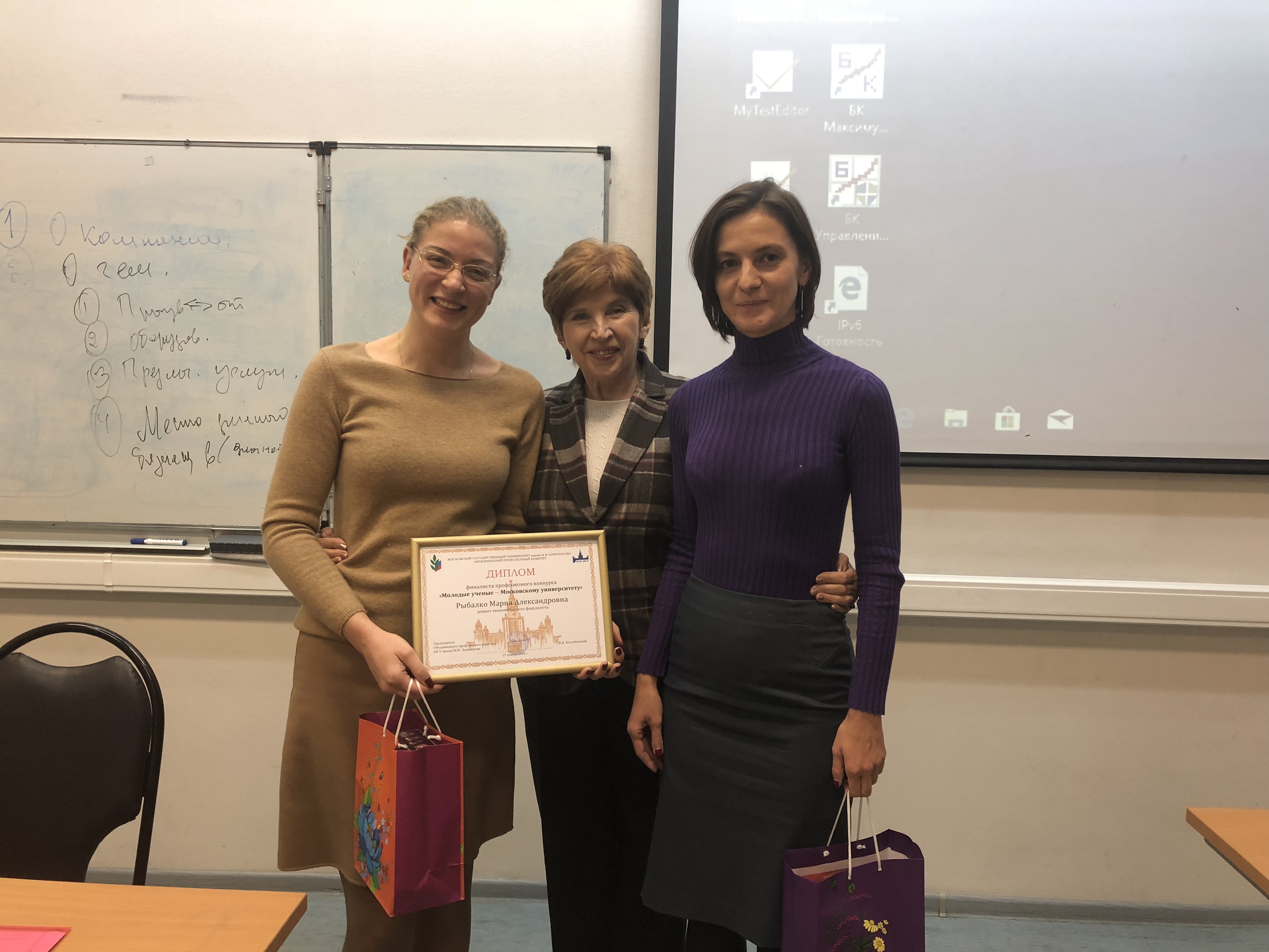 Кафедра маркетинга поздравила заместителя заведующего кафедрой Марию Александровну Рыбалко и заместителя заведующего кафедрой Марину Станиславовну Очковскую с успешным выступлением и призовым вторым местом в команде экономического факультета на конкурсе "Молодые ученые - Московскому университету".